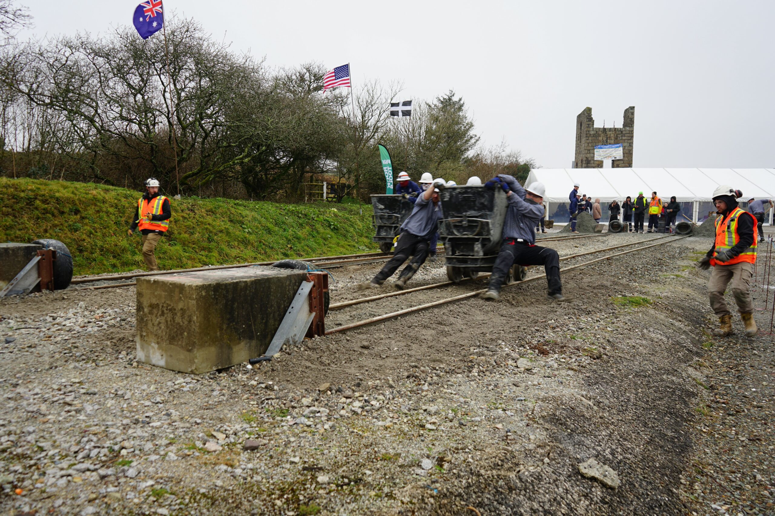 In dieser Disziplin geht es darum, einen Hunt (Erzwagen) so schnell wie möglich mit Sand voll zuschaufeln. Es nehmen hierbei alle 5 Mitglieder des Teams teil, die sich in 3 Schaufler und 2 Abzieher aufteilen. Jedes Team bekommt vor der Disziplin eine Vorbereitungszeit. In dieser dürfen nur die 5 teilnehmenden Mitglieder den Materialhaufen berühren und diesen so anhäufen, wie er ihnen am besten gefällt. Nach Ablauf der Vorbereitungszeit darf der Sandhaufen bis zum Beginn der Disziplin nicht mehr verändert werden.