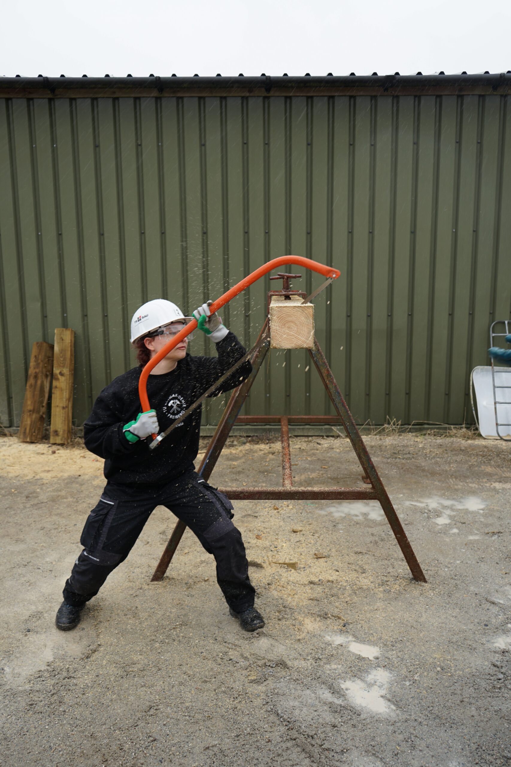 In diesem Teil des Wettkampfes müssen sich die Teams im Sägen beweisen. Es sind ebenfalls alle 5 Teammitglieder gefragt. Diese zersägen abwechselnd einen Balken mit einer Kantenlänge von 15 cm auf Zeit. Dafür sind zwei Sägen gegeben, die von den teilnehmenden Mitgliedern untereinander weitergereicht werden sollen. Der Balken ist in sieben Abschnitte mit einer Läge von 7,5 cm eingeteilt und kann in der Vorbereitung gemustert sowie auf die Qualität geprüft werden. Es dürfen von den sieben Abschnitten pro Team zwei Abschnitte herausgestrichen werden, die als schwer zu sägen gelten.